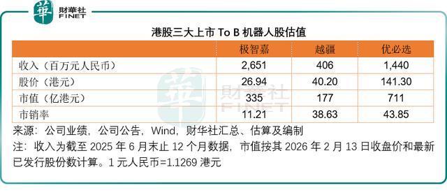 从七家主流To B机器东说念主企业,包括三家港股上市公司越疆(02432.HK)、优必选(09880.HK)和极智嘉(02590.HK),以及四家已递表未上市公司斯坦德机器东说念主、凯乐士、优艾智合和海柔翻新的财务良友来看,就收入体量和买卖化程度而言,行业呈现显明的「一超多强」容貌。